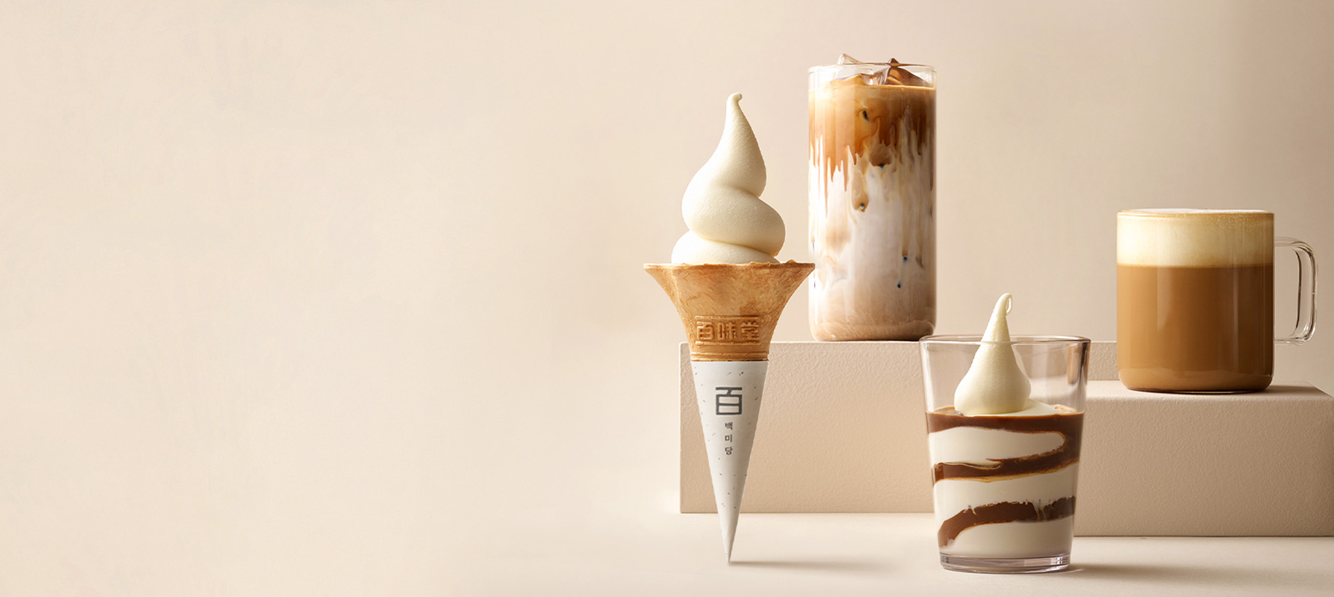 オーガニック牛乳のさっぱりとした味わいが際立つ「百味堂アイスクリーム」と、濃いコーヒー×牛乳のバランスが香ばしさを誇る「百味堂ラテ」まで。口いっぱいに広がる濃厚な味わいの深さが百味堂の美味しさの答えです🤍