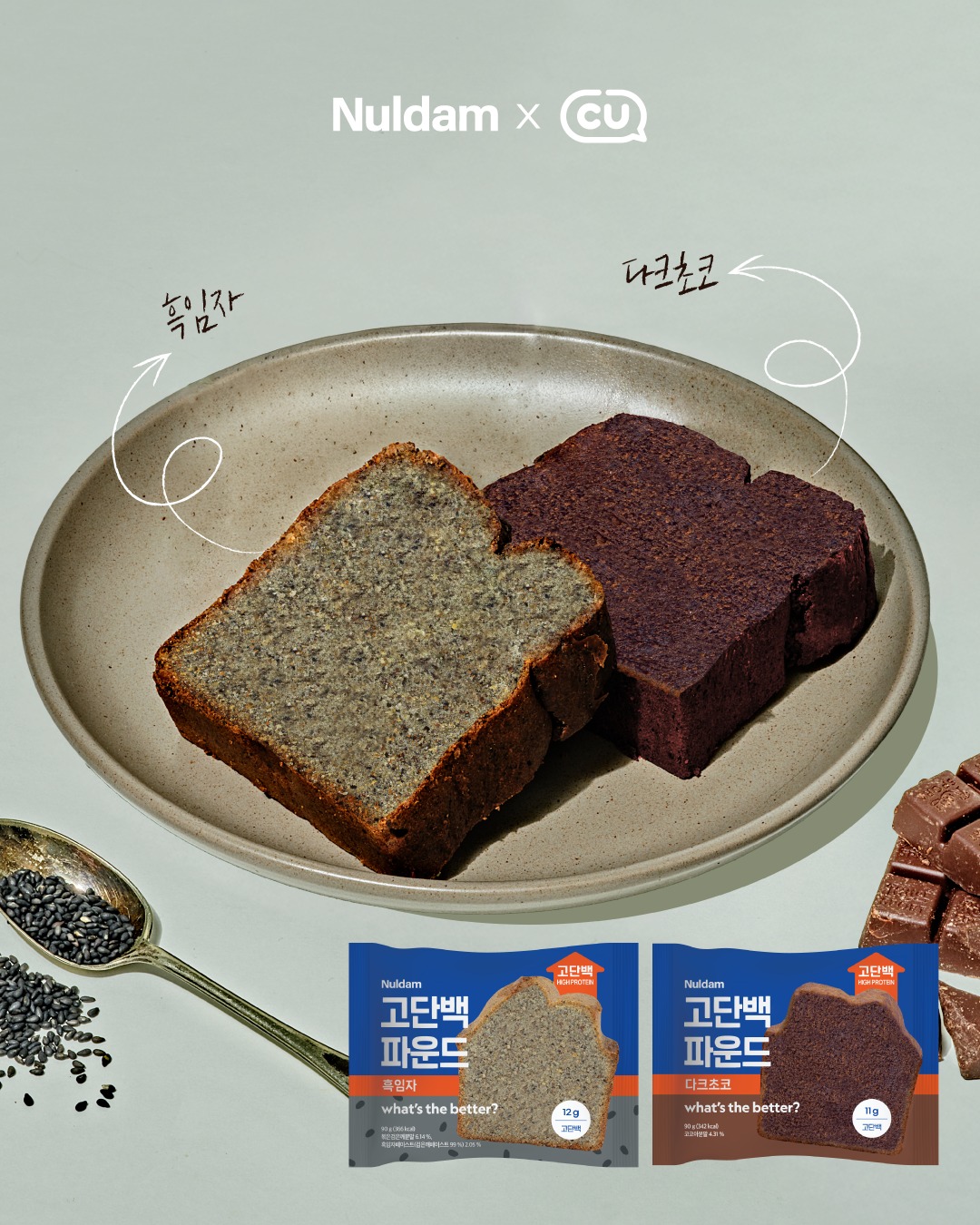 | 商品名 | ①고단백 파운드 흑임자 高タンパクパウンド黒ごま ②고단백 파운드 다크초코 高タンパクパウンドダークチョコ |