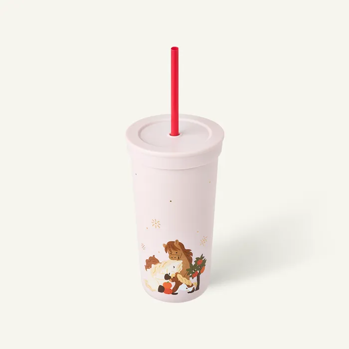 ポニー達が抱き合って、暖かな雰囲気漂うタンブラーで、ストローが付いたコールド用になっています😌